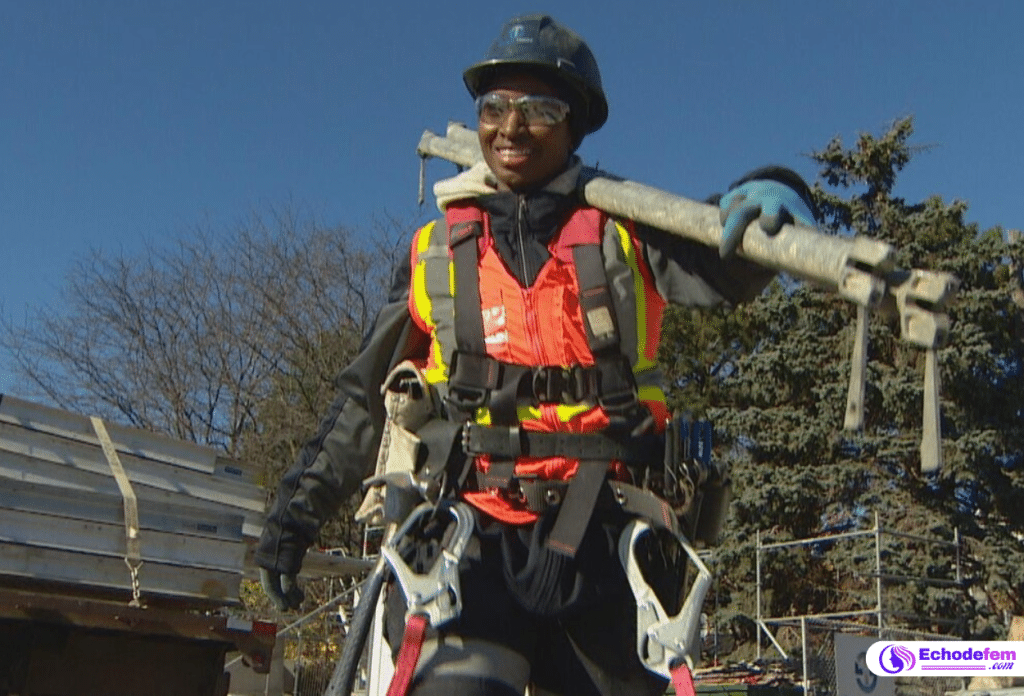 Technicienne en échafaudage, elle participe à la construction de structures métalliques de plusieurs étages, un métier exigeant et peu commun pour une femme. Son parcours, marqué par la résilience et la détermination, est un exemple éloquent de la manière dont les femmes peuvent s’imposer dans des domaines techniques et physiquement exigeants.
